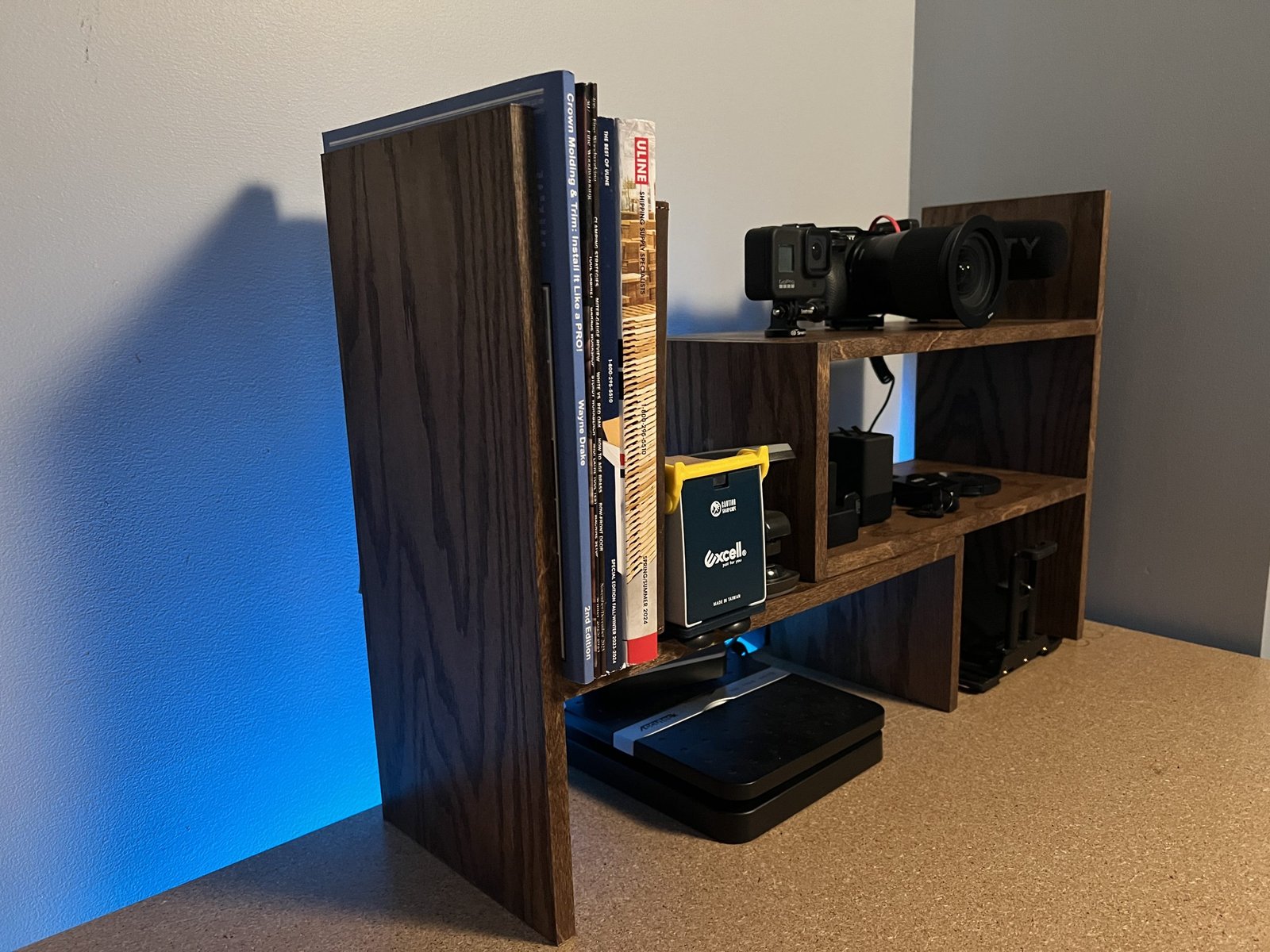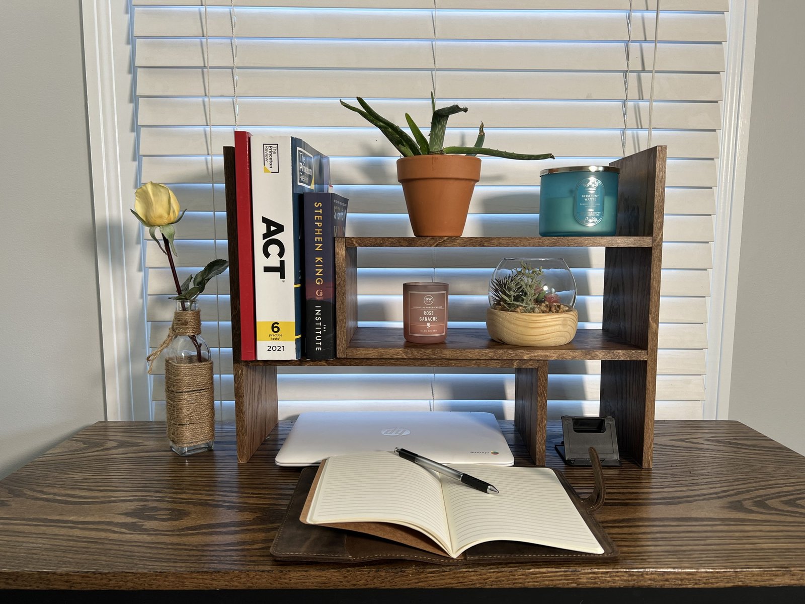 This shelf is perfect for organizing your desktop with office supplies and books, your kitchen with spices and oils, or even your beauty supplies in the bathroom or makeup station.  Complete the build with minimal tools in a single day!  This makes for a perfect gift to your college bound family and friends!